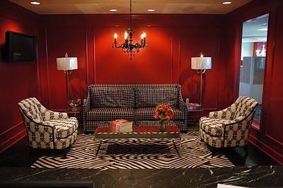 If you haven't guessed yet, only 13 out of the 105 employees at the offices are male. The design is saucy and reminiscent of a boudoir--it looks like Jonathan Adler had a twin sister and she went to town. But, no...it was Bradley Hughes.